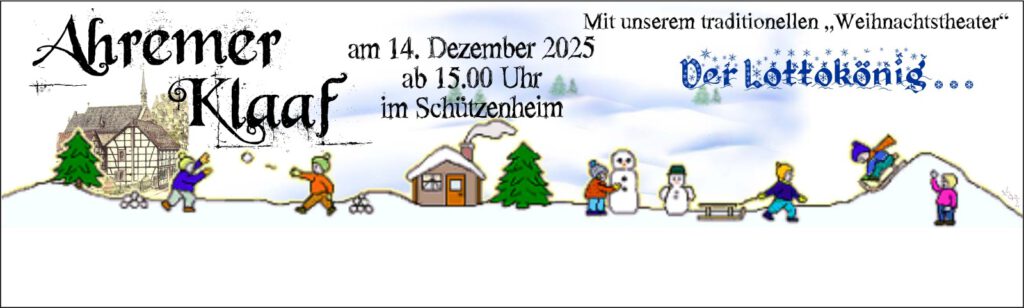 Ahremer Klaaf mit Siegerehrung der Schießwettbewerbe 2025 und traditionellem Theaterstück am 14. Dezember 2024 ab 15 Uhr im Schützenhaus Ahrem - Dorffest auf dem Dorfplatz Ahrem